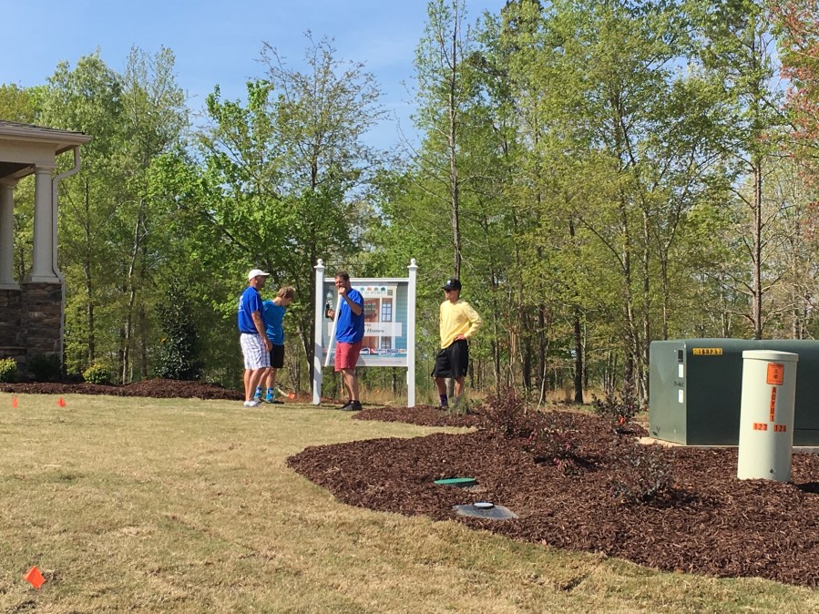 Hmmm, how many people does it take to install one sign???